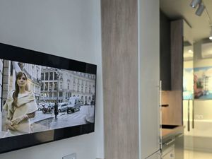 Полностью готова для проживания, имеется вся необходимая мебель. В кухонной зоне установлена качественная бытовая техника. Укомплектована индукционной плитой, холодильник, вытяжка, духовой шкаф, посудомоечная машина, вместительные шкафчики. В распоряжении новый набор посуды.
