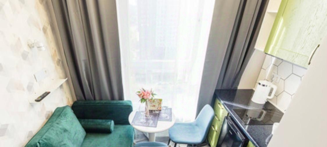 Сдается стильная студия, где общая площадь составляет 10,5 кв. м, расположена на 14 этаже 22-этажного дома.