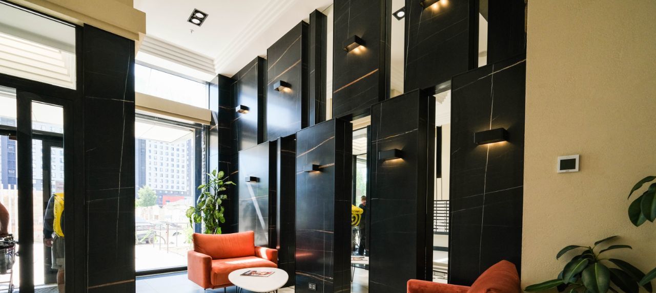Дом, в котором расположена квартира, оснащен грузовым и пассажирским лифтами, поэтому можно с легкостью добираться на нужный этаж.