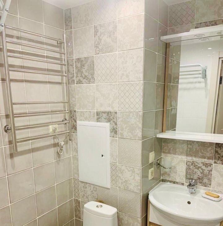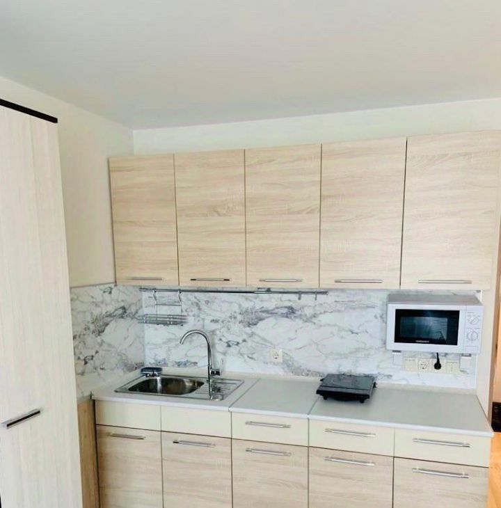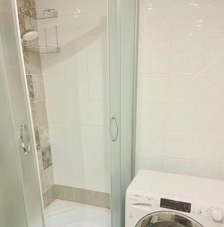 - бытовая техника (полноценный холодильник, стиральная машина, СВЧ, smart-ТВ 32 дюймов, утюг, чайник, индукционная плитка, гладильная доска, полотенцесушитель, раскладные сушилки).