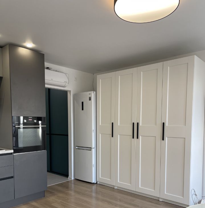 - Свежий ремонт, много мест для хранения: встроенный шкаф в прихожей и модульный шкаф под потолок.