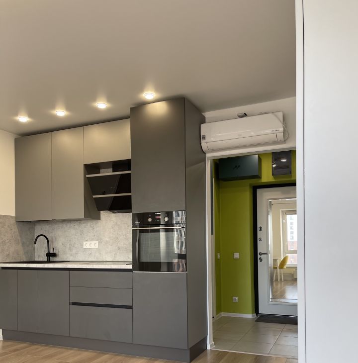 - Полностью укомплектованная кухня: посудомоечная машина, вытяжка, духовой шкаф, варочная панель.