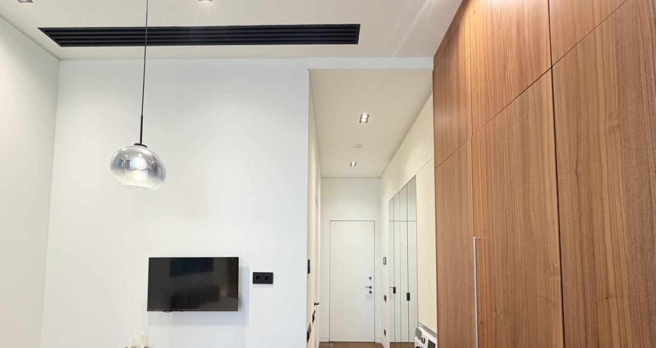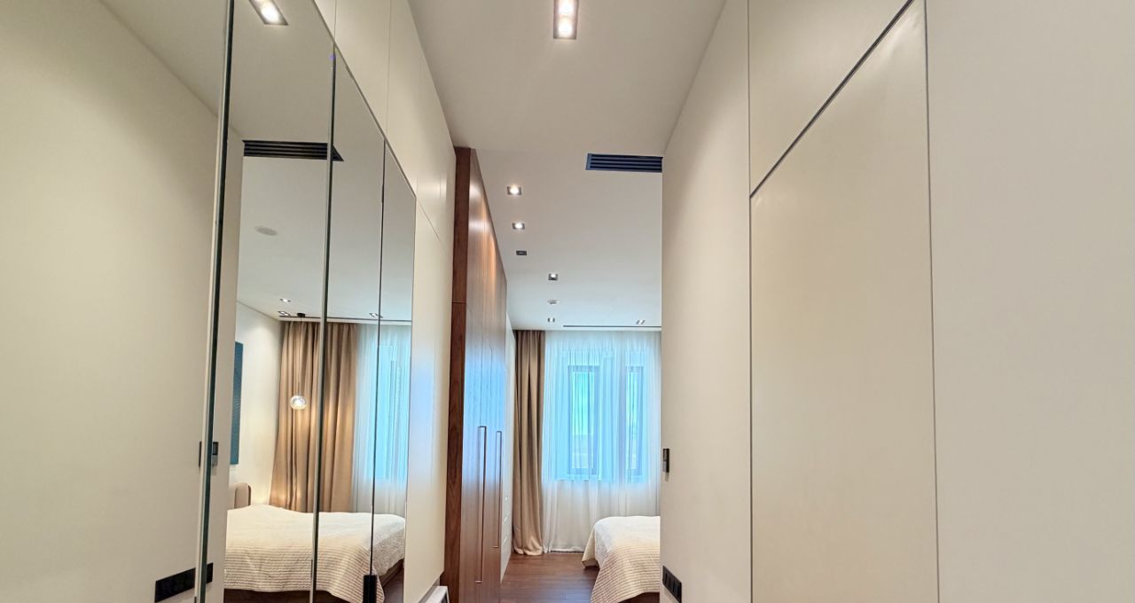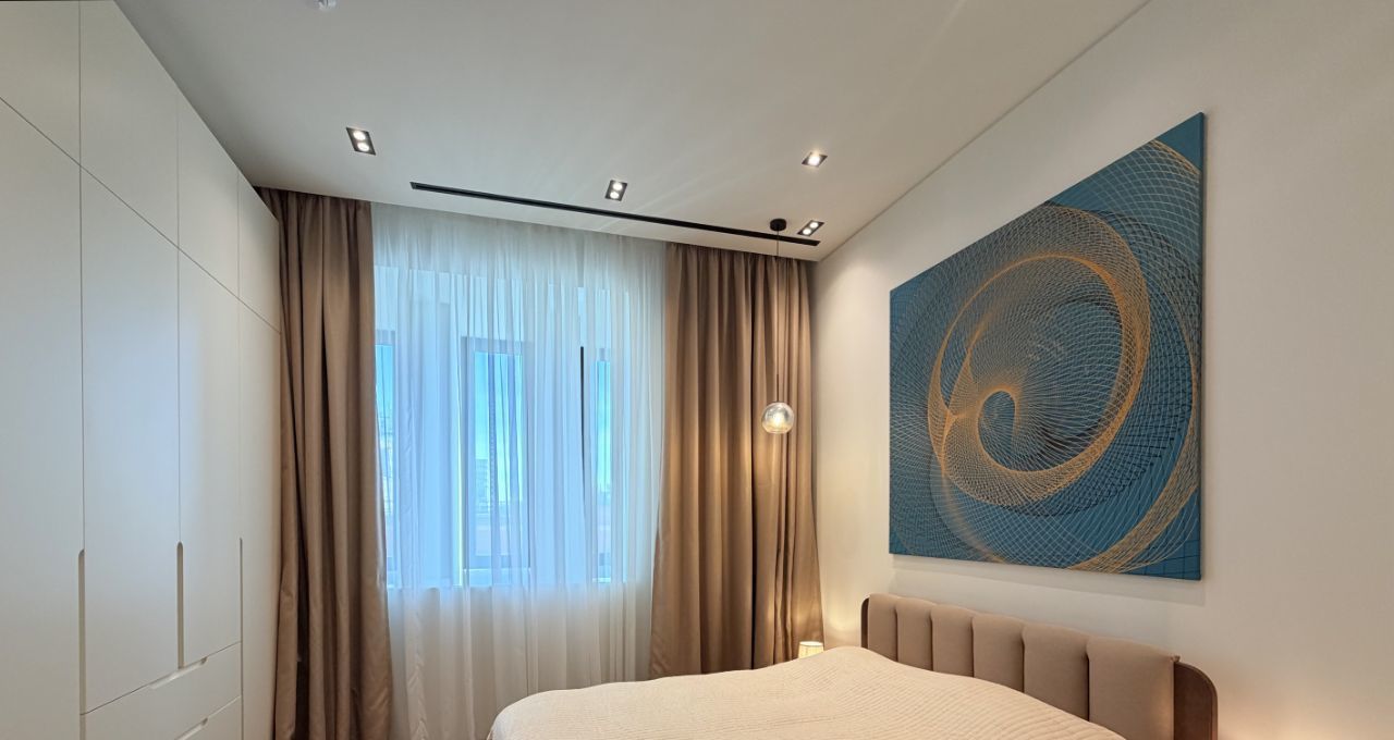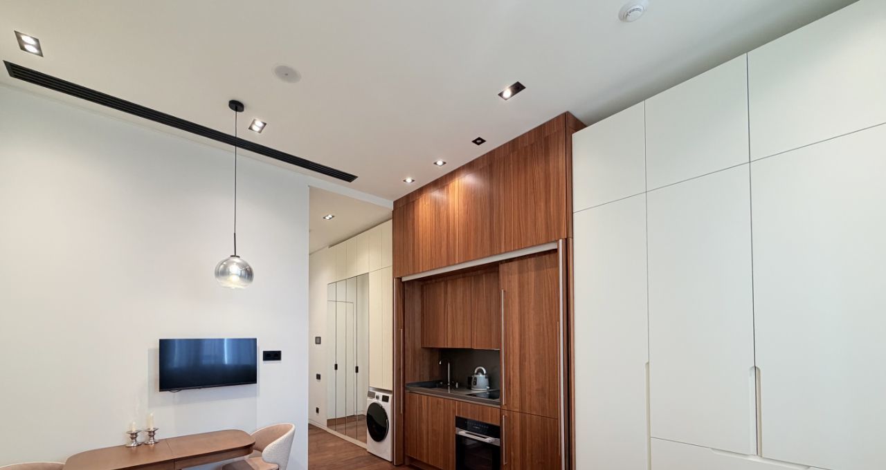 Апартамент оборудован всей необходимой техникой и мебелью (варочная панель, вытяжка, телевизор, стол раскладывается, холодильник с морозильной камерой, духовой шкаф, вытяжка, стиральная машина с функцией сушки, кровать с матрасом и подъемным механизмом, 2 встроенных шкафа, электрокарниз с пультом, приточно-вытяжная вентиляция на тепло/холод).