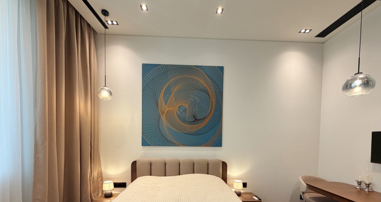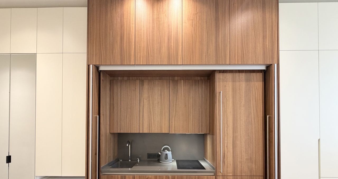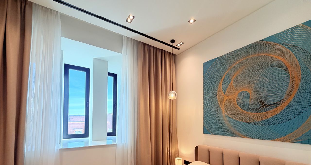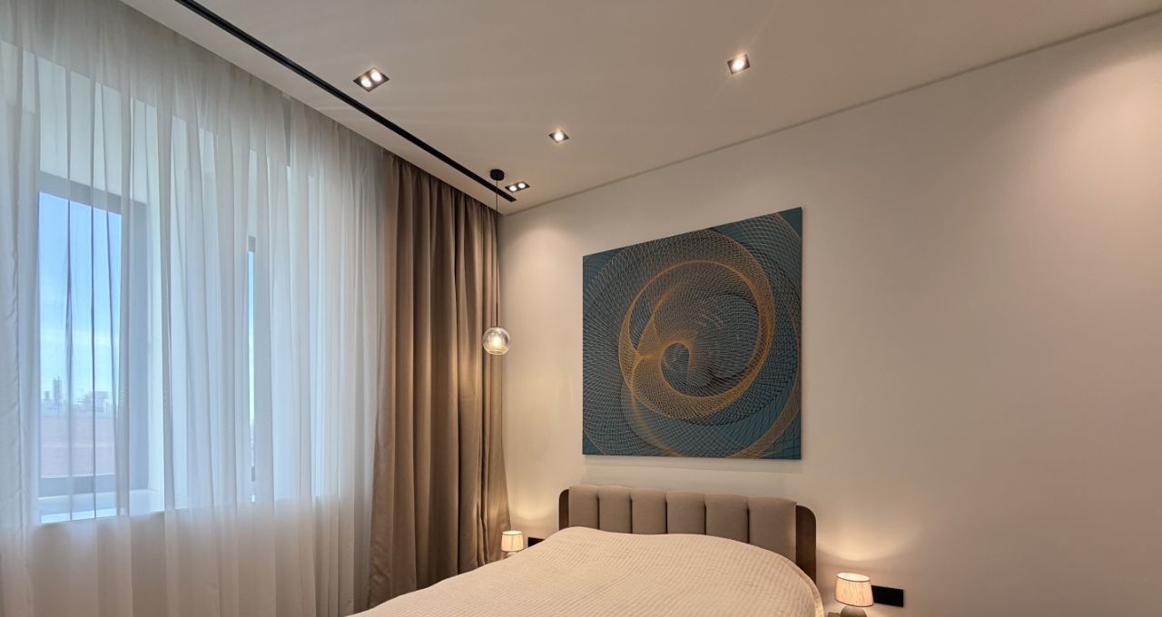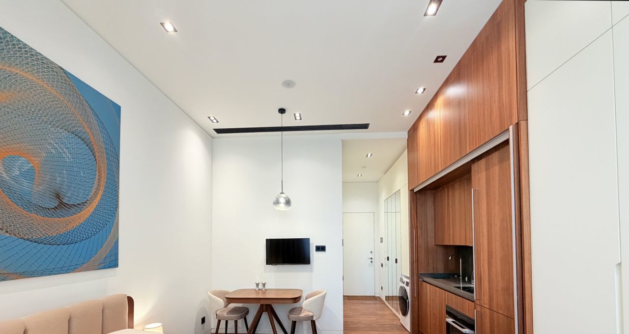 Апартамент оборудован всей необходимой техникой и мебелью (варочная панель, вытяжка, телевизор, стол раскладывается, холодильник с морозильной камерой, духовой шкаф, вытяжка, стиральная машина с функцией сушки, кровать с матрасом и подъемным механизмом, 2 встроенных шкафа, электрокарниз с пультом, приточно-вытяжная вентиляция на тепло/холод).