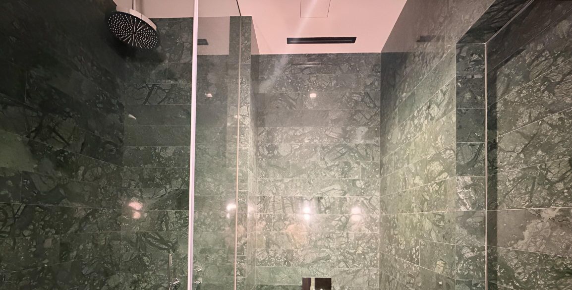 • Отделка ванной комнаты натуральный мрамор Pietra Davola (Италия).