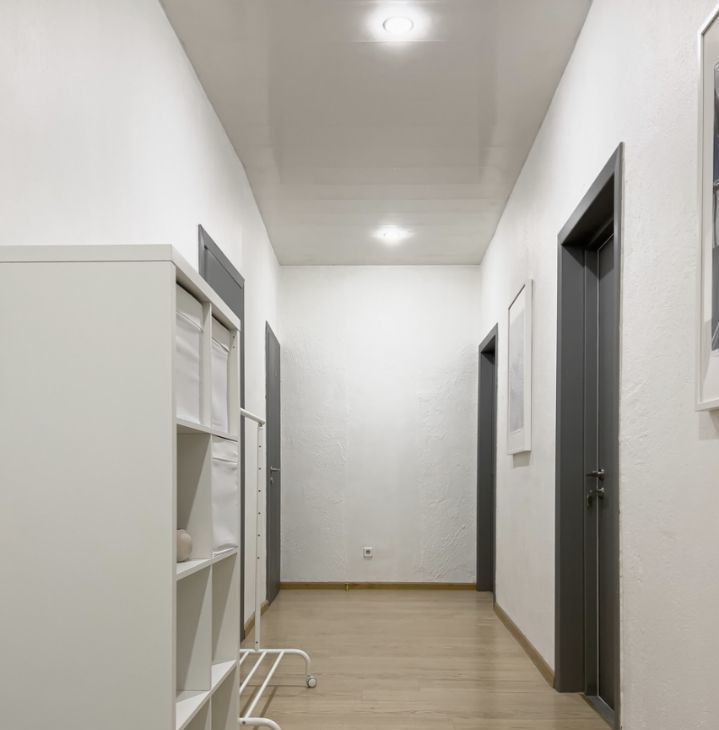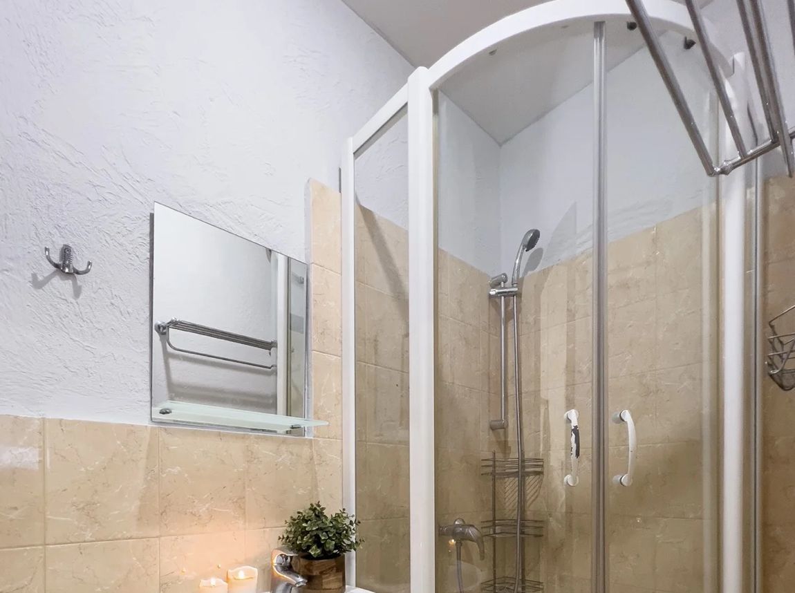 Общие зоны аккуратные и ухоженные. Входная группа оборудована стеллажом, рейлом для одежды и зеркалом в полный рост. В распоряжении жильцов — стиральная машина, гладильная доска, утюг и сушилка. Подключен Wi-Fi.