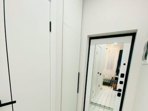 Квартира: Студия. Основная мебель и кухня вся есть (все, что на фото). Вся техника была в аккуратном использовании меньше года: Плита и духовой шкаф, холодильник и стиральная машин, посудомоечная машина и микроволновка.