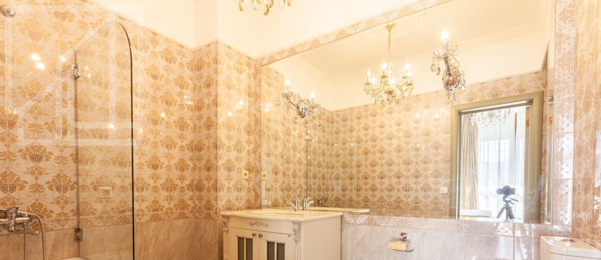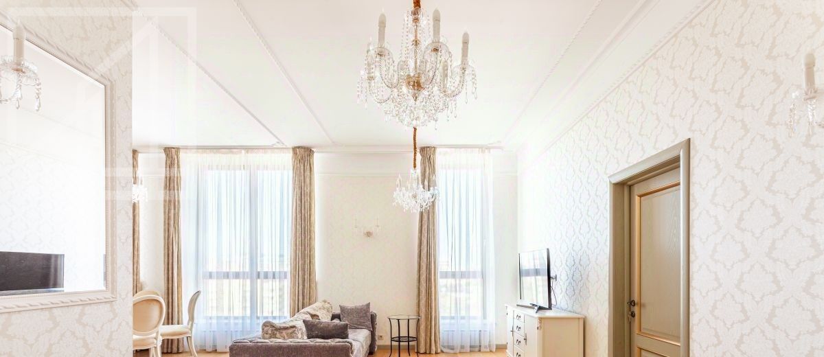 Планировка: просторная кухня-гостиная с обеденной зоной, две спальни, жилая комната (можно использовать как спальню или кабинет), гардеробная комната, три совмещенных санузла с ванной и душевой кабиной, гостевой санузел, постирочная, прихожая. Квартира меблирована, укомплектована необходимой бытовой техникой. Выполнена дизайнерская отделка, интерьер оформлен в классическом стиле. Из окон открывается вид на МГУ и "Лужники".