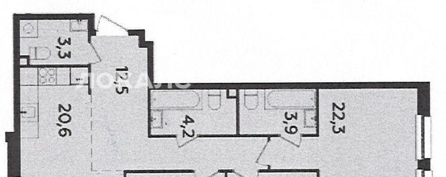 Свободной планировки кв. Москва ул. Народного Ополчения, 15К2 (57.6 м²)