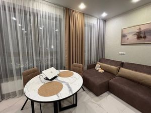 В квартире выполнен качественный ремонт, сделана шумоизоляция, панорамные окна от застройщика. Вся мебель и техника остаются вам. Проживал только собственник, в аренду никогда не сдавалась. Это решение для тех, кто ценит время и комфорт.