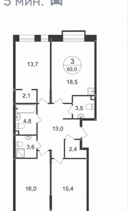 Свободной планировки кв. Москва, Москва, Московский г. ул. Лаптева, 9 (93.0 м²)