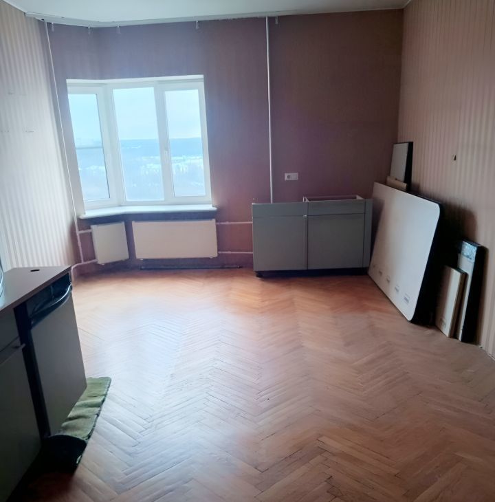 Возможно изменение планировки и количества изолированных комнат до 4-х за счет разделения бытовой комнаты и кухни-гостиной путём установки межкомнатных перегородок. Квартире необходим ремонт.