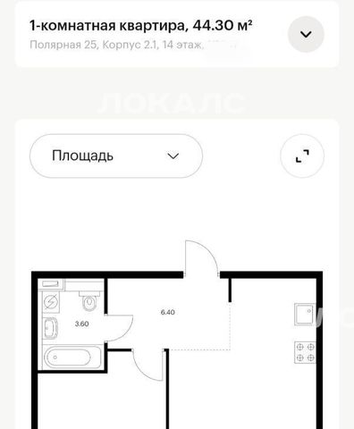 Свободной планировки кв. Москва Полярная ул., 25к2 (44.3 м²)