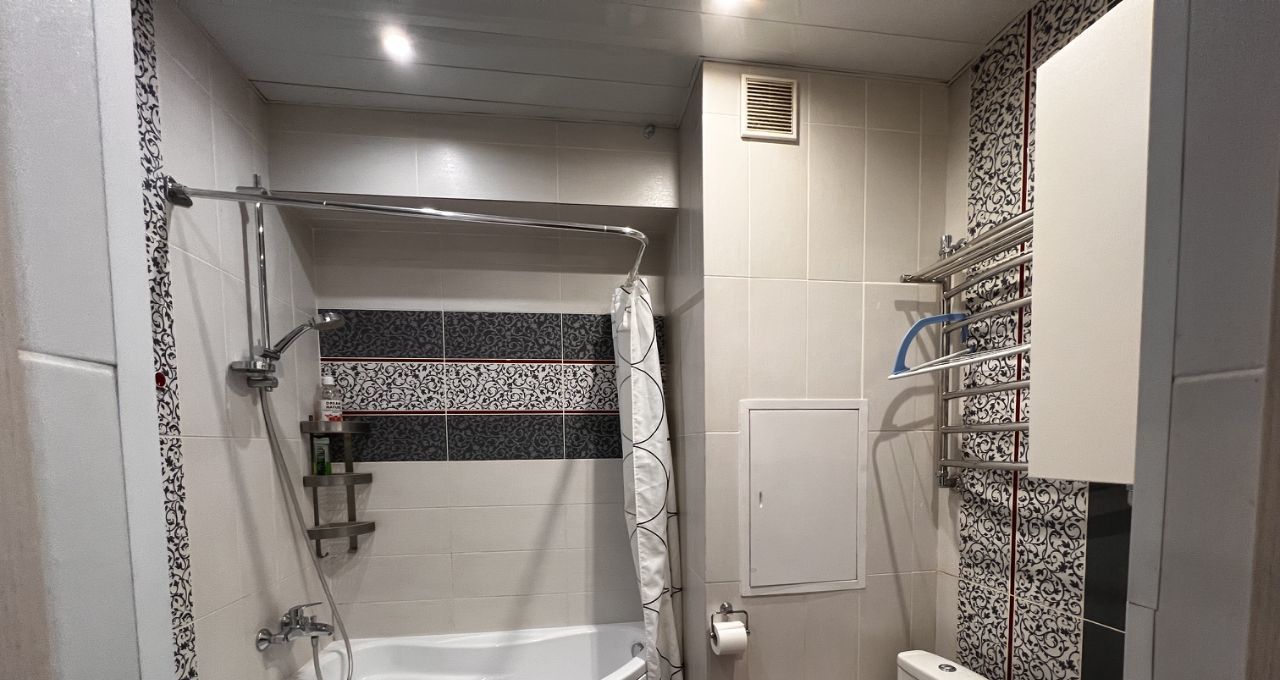 В квартире сделан качественный евроремонт. Жилая площадь составляет 32 кв. м, а кухня — 10 кв. м, что позволяет разместить всю необходимую технику и мебель. Просторный санузел совмещен. Из окон открывается вид на улицу, что дает много естественного света. Есть лоджия, где можно обустроить уютное место для отдыха.