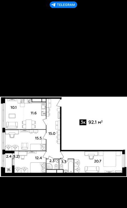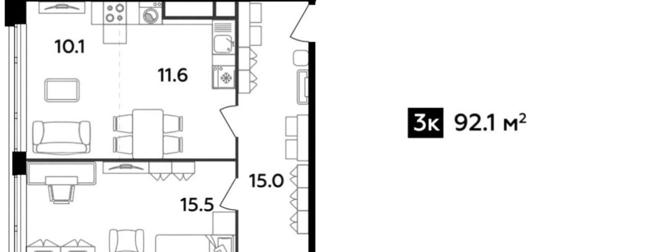 Свободной планировки кв. Москва просп. Лихачева, 20 (92.1 м²)