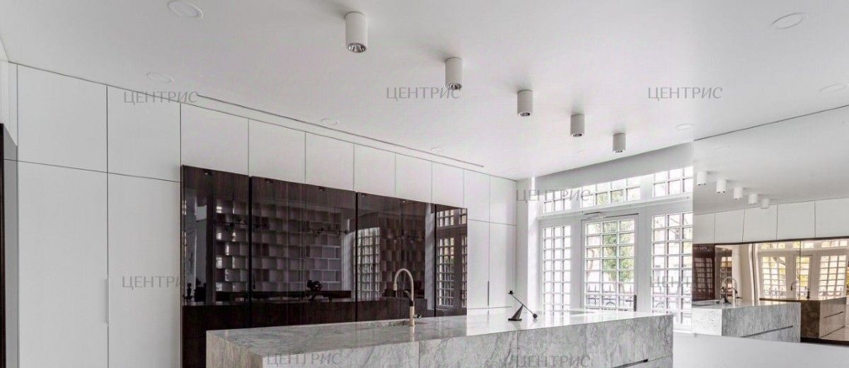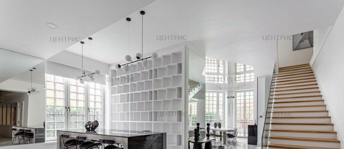 на первом этаже - просторную гостиную со вторым светом, в которой высота потолков достигает семи метров, обеденную зону, с возможность выхода на собственное патио,
