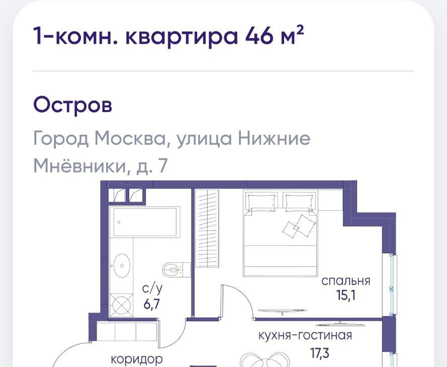 Свободной планировки кв. Москва ул. Нижние Мневники, 7 (46.0 м²)