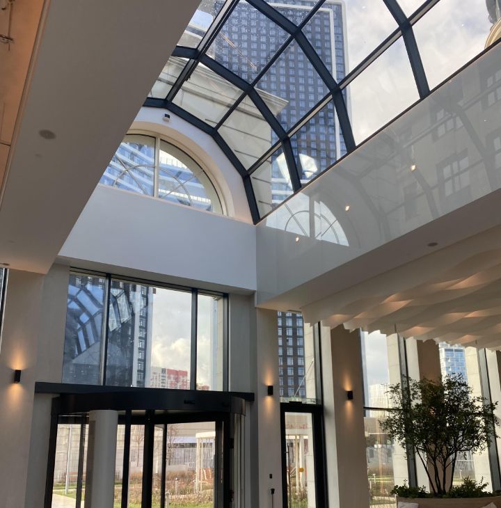 правая башня , 5 этаж , ближе к центральному входу . Фотография вид из окна .