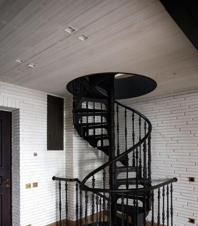 Со 2-го на 3-й и далее на 4-й уровни ведёт винтовая лестница, отлитая вручную из чугуна. Она воспринимается как арт-объект, словно перенесённый в лофт из глубины прошлого столетия, и задаёт характер всей верхней части пространства.