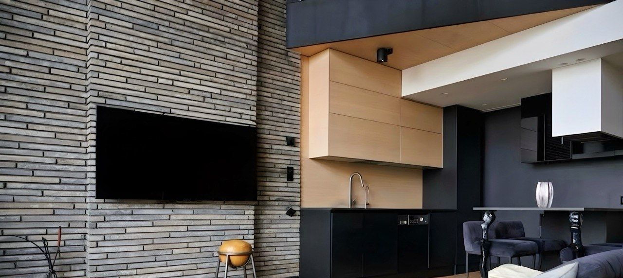 полноценная гостиная, совмещённая со второй кухней и вторым камином. Здесь же установлен high-end электрический рояль Yamaha — для тех, кто ценит живую музыку дома. На уровень можно попасть как изнутри лофта, так и через отдельный вход с этажа, что делает его идеальным для взрослых детей или отдельного семейного блока.