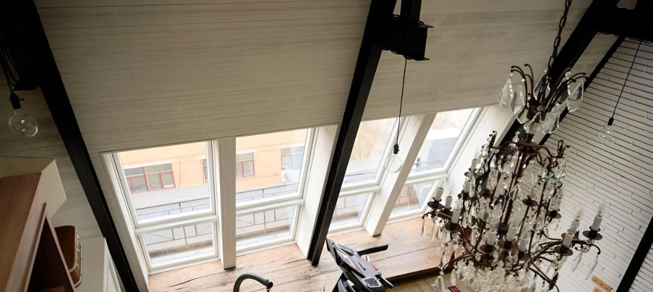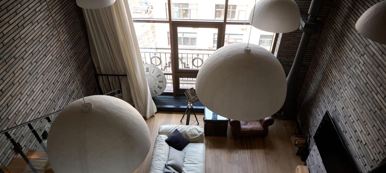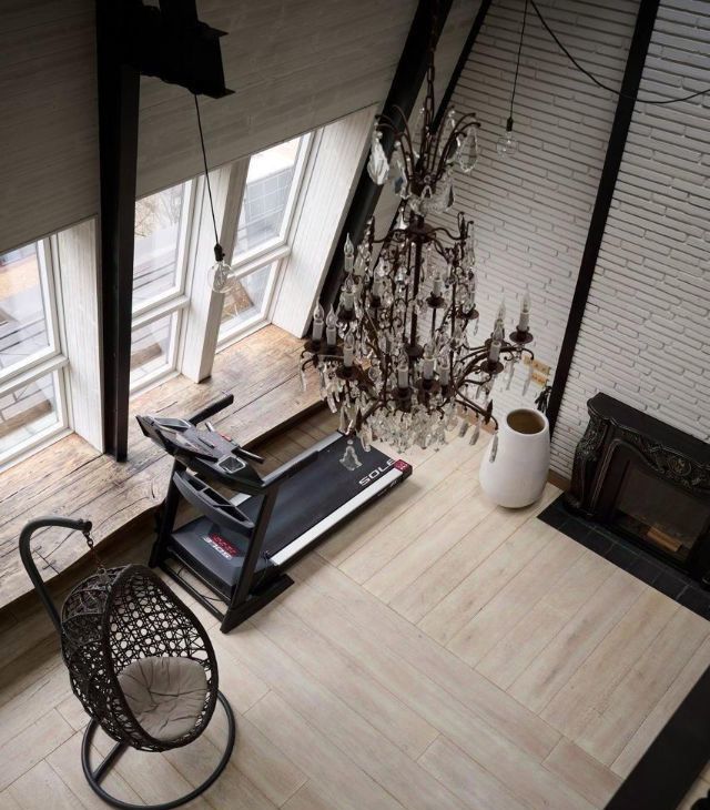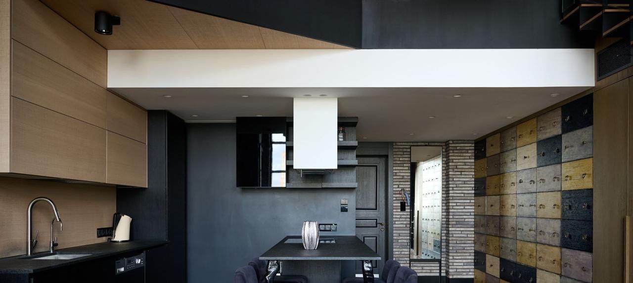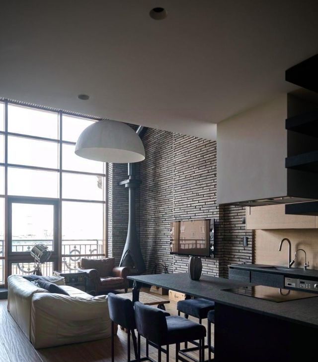 Это частный дом-особняк, с камином, поднятый над городом: лофт общей жилой площадью 220 м² (без учёта террасы) занимает 7-й, 8-й, 9-й и 10-й (последний) этажи монолитного дома 1938 года постройки. Архитектура здания в эстетике манхэттенских доходных домов сразу считывается как знак статуса, закрытого клуба и безупречного вкуса.