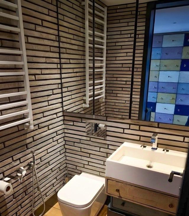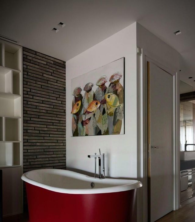 Поднимаясь по подвесной лестнице с первого уровня, первое, что вы видите, — отдельно стоящая дизайнерская ванна в открытом пространстве. Зимой это напоминает частное SPA на высоте: тишина, пена и заснеженная Москва под вами.