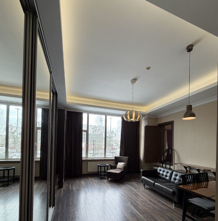 Впервые сдаются в аренду просторные, готовые ко въезду, апартаменты. Апартаменты свободной планировки площадью 103 кв. м. Апартаменты находятся на 2-м этаже монолитного дома, построенного в 2015 году. Высота потолков составляет 3 метра, что создаёт ощущение простора и свободы. Дом оснащён двумя пассажирскими и одним грузовым лифтом, а также наземной парковкой (стоимость паркинга - 10000₽/мес).
